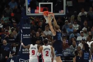 莫兰特突破分球 兰代尔接球强起双手隔扣斯图尔特