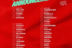 瑞士队公布11月世预赛名单:扎卡、阿坎吉、科贝尔在列